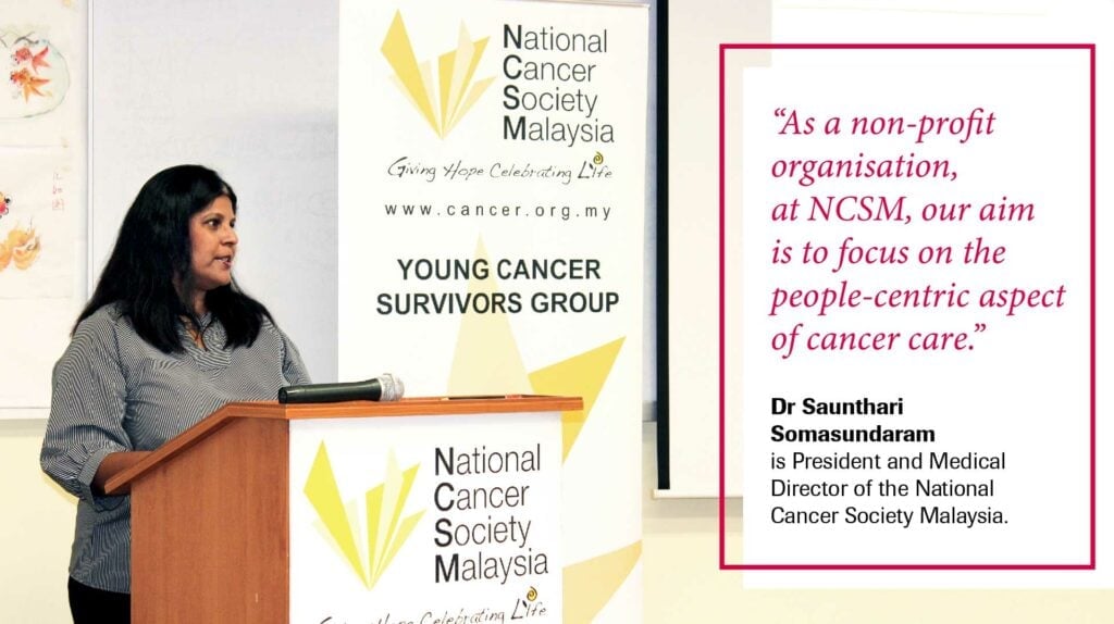 Those who know Dato’ Dr Saunthari Somasundaram, President and Medical Director of the National Cancer Society Malaysia (NCSM) might say being a vocal advocate for cancer patients is in her DNA. She shares her experiences with Diagram.