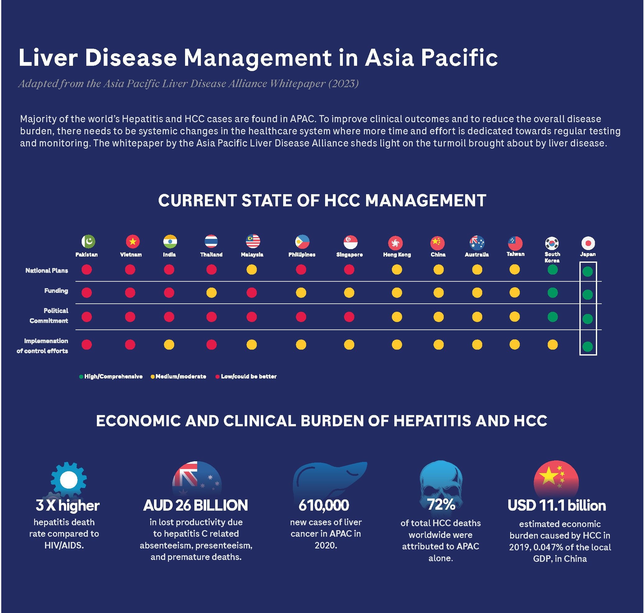 In the Asia-Pacific region, liver diseases pose a significant public health challenge that has been exacerbated by factors such as high prevalence rates, limited access to healthcare services, and inadequate resources. Home to over half of the world’s population, the region witnesses 63% of global liver disease deaths, with viral hepatitis and liver cancer, predominantly HCC, being major contributors.8