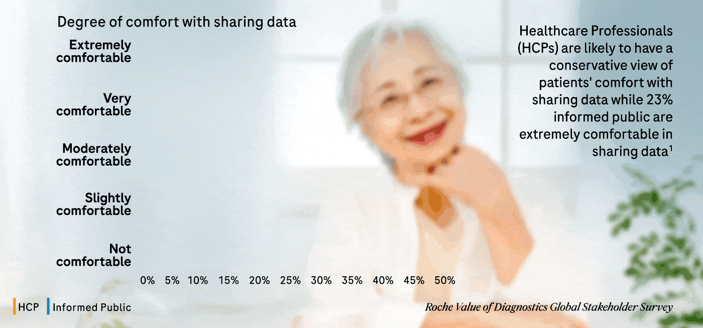 Healthcare Professionals (HCPs) are likely to have a conservative view of patientsâ comfort with sharing data while 23% informed public are extremely comfortable in sharing data.1