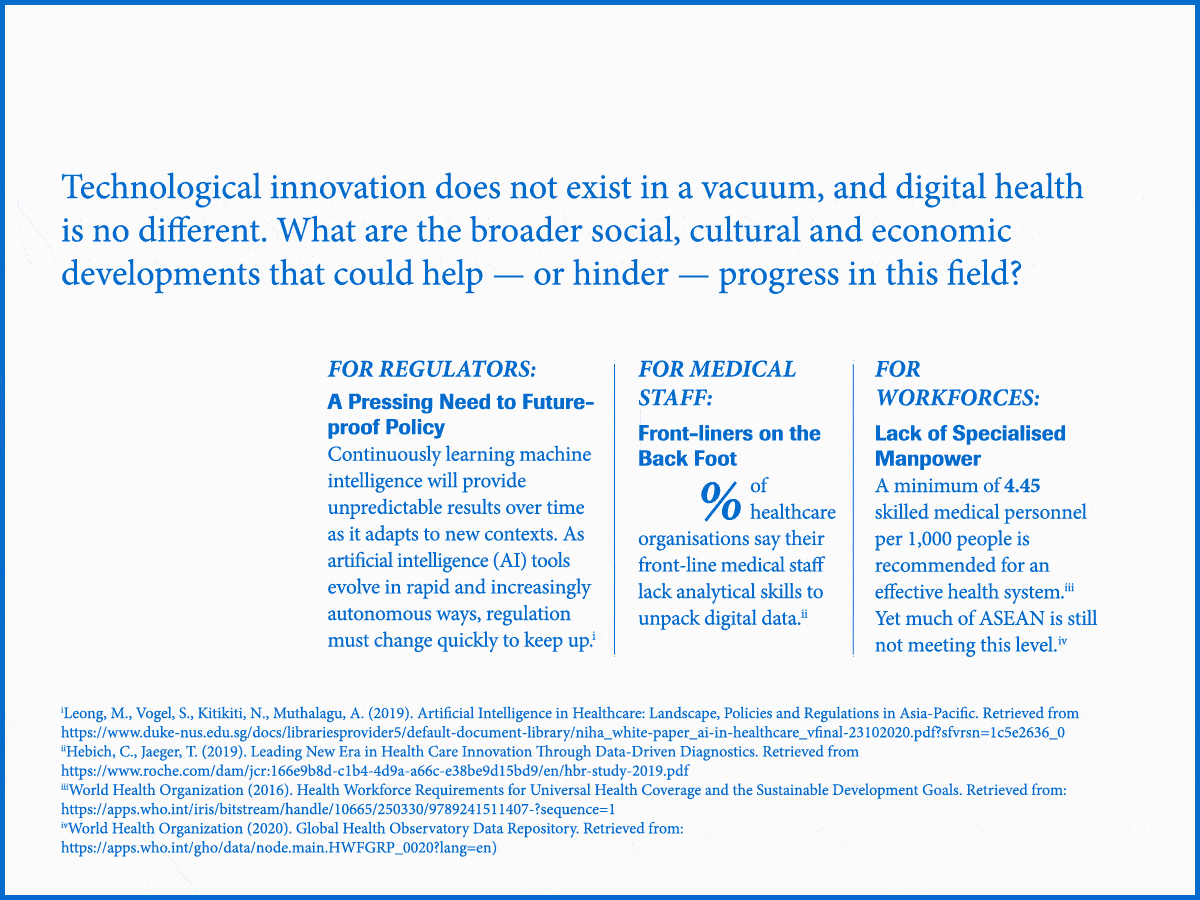Digital health comes to life in the objects that we now handle every day, and this is where things can get complicated. As highlighted by the Asia Pacific Medical Technology Association in its recent digital health survey, a common regulatory framework across the region would help to address issues of interoperability between systems, cybersecurity and safety of the medical devices.2