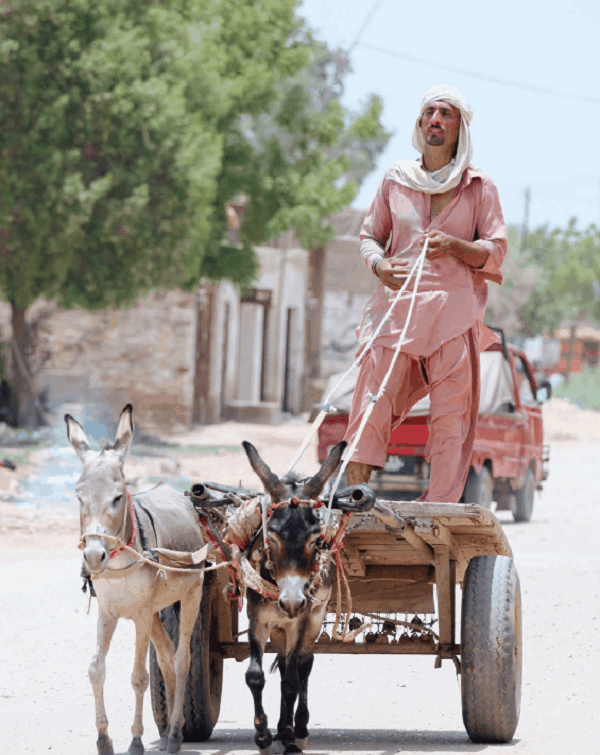 A man in Nowshera, Pakistan is going about his daily errands in one of the most ancient methods of transportation – a donkey cart.